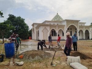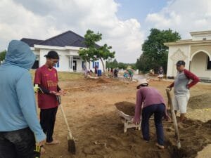 Muaro Jambi (10/8). Suasana penuh kekompakan terlihat di halaman Masjid Al-Hikmah Kelurahan Pijoan, Kecamatan Jambi Luar Kota, Muaro Jambi, pada Minggu (10/8) siang. Seluruh warga LDII bergotong royong melakukan pengecoran halaman yang berada tepat di depan masjid.