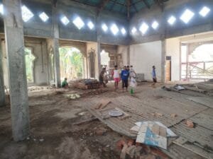 Merangin (20/7). Puluhan warga LDII Pimpinan Cabang (PC) Bangko, Kabupaten Merangin, bersinergi membersihkan lantai dua Masjid Baitul Makmur, pada Minggu (20/7/2025). Kegiatan gotong royong ini merupakan persiapan untuk pemasangan lantai granit di area tersebut.