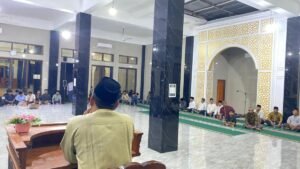 Muaro Jambi (2/3). Suasana religius dan kebersamaan menyelimuti masjid Desa Mekarsari Makmur saat kedatangan Tim Safari Ramadhan Pemerintah Desa, Minggu (1/3/2026). Dipimpin langsung oleh Kepala Desa Mekarsari Makmur, Sulaiman, rombongan disambut hangat oleh Ketua PAC LDII setempat, H. Mustofa Luthfi, beserta jamaah yang telah menanti sejak sore.