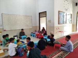 Selain teori, anak-anak diajak simulasi praktik sholat dan membaca Al-Qur’an. Alfina menambahkan, “Membaca Al-Iqro dengan tartil adalah kunci untuk lancar mengaji. Kami pastikan mereka paham tahap demi tahap.” tambahnya.