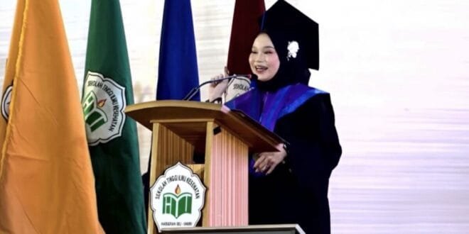 Tri Winda Hidayati, S.Farm, selaku wisudawan dari Program Studi Farmasi sekaligus Pemudi aktif dalam Lembaga Dakwah Islam Indonesia (LDII) Jambi memberikan kata sambutan mewakili seluruh wisudawan.