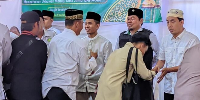 Jambi (29/3). Ketua DPW LDII Provinsi Jambi, Rahmat Nuruddin, menghadiri kegiatan Pengajian Akbar dan Halal Bihalal LDII Kota Jambi yang digelar di Masjid Tawakkal Kota Jambi pada Minggu (29/3/2026). Kegiatan tersebut berlangsung khidmat dan dipadati ribuan warga LDII serta tamu undangan dari berbagai wilayah di Kota Jambi.