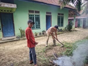 Meski hanya diikuti oleh tujuh personel, antusiasme warga tidak luntur. Dengan membawa peralatan mandiri seperti cangkul, sapu, hingga angkong, mereka menyisir setiap sudut halaman masjid untuk memastikan lingkungan tampak asri sebelum memasuki bulan puasa.