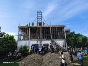Sarolangun (17/7). Puluhan warga Lembaga Dakwah Islam Indonesia (LDII) Kabupaten Sarolangun menggelar gotong royong pengecoran lantai dua Gedung Aula Serbaguna DPD LDII Sarolangun, Kamis (17/7) pagi.
