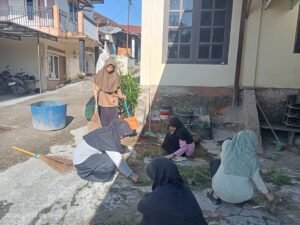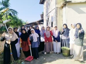 Sejak pagi hari, para santriwati sudah mulai beraktivitas di area pondok. Dengan pembagian tugas yang sederhana, sebagian menyapu halaman, sebagian lain membersihkan kamar asrama, serta ada yang merapikan area taman dan selokan. Kegiatan berjalan dengan tertib, namun tetap santai dan penuh kebersamaan.