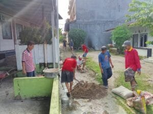 Jalan setapak yang sebelumnya berlubang, licin saat hujan, dan kurang rata, kini berangsur diperbaiki dengan pengerukan tanah, perataan permukaan, serta penimbunan menggunakan material yang disiapkan secara kolektif.
