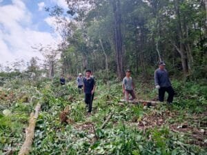 Ia menambahkan, kegiatan ini telah direncanakan jauh hari dan baru terealisasi sekarang. “Kita bagi tugas sesuai kemampuan peserta agar lebih efisien. Ada yang menebang, membersihkan rumput, dan menyemprot,” jelas Saikun.