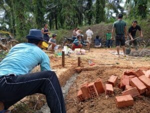 Muaro Jambi (21/11). Sinergi antara umat beragama dan masyarakat kembali ditunjukkan di Desa Bukit Jaya Kecamatan Bahar Selatan. PAC LDII Bukit Jaya bersama warga setempat melakukan aksi gotong royong membangun pos keamanan lingkungan (pos kamling), Jum’at (21/11).