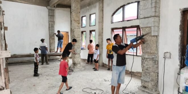 “Masjid ini awalnya hanya tembok batu bata tanpa plester dan beralaskan tikar. Saat ini, pembangunan sudah masuk tahap lantai dua, sementara lantai satu telah rampung sepenuhnya dengan fasilitas granit dan pendingin ruangan (AC),” ujar Indra di lokasi kegiatan.